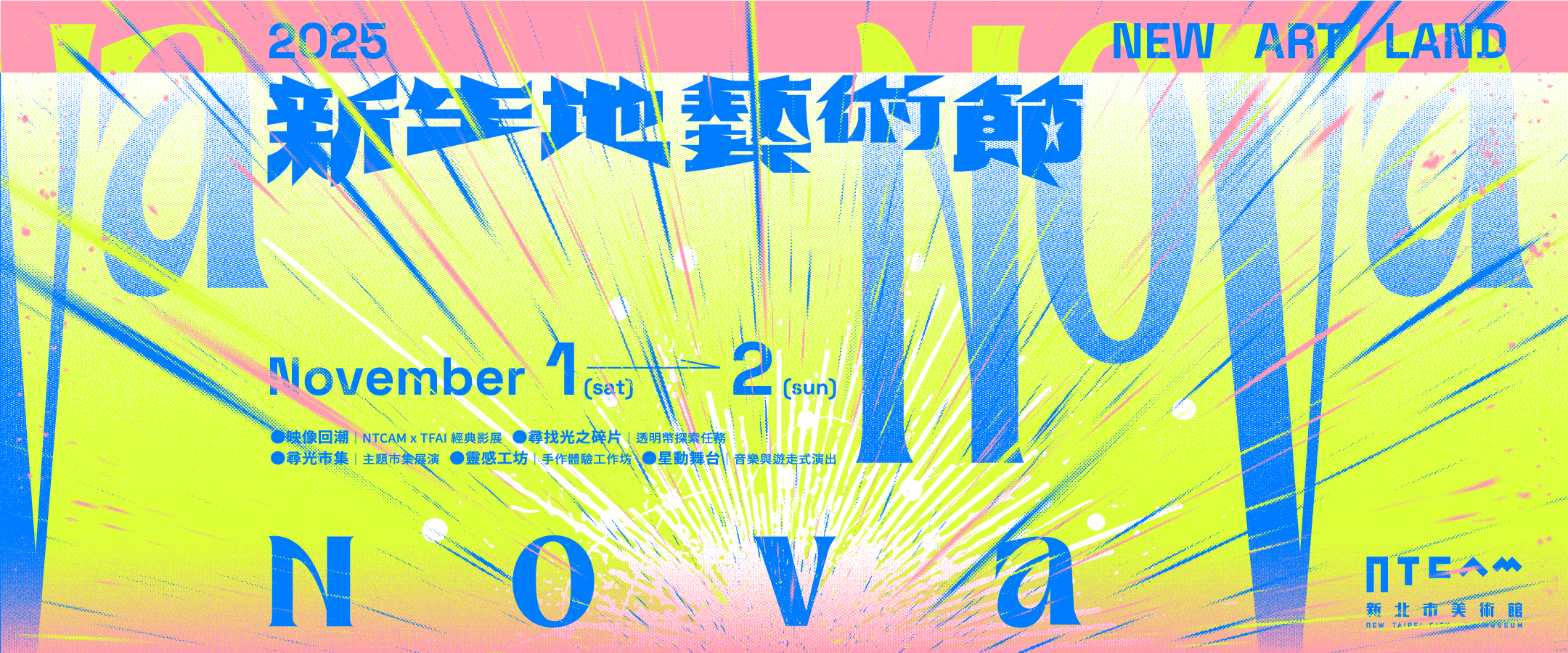 「NOVA NOVA」一詞取自天文學的「新星」(Nova)意象,象徵恆星系統中能量的突然釋放——在短暫時間內以極高亮度閃耀的天體事件。這股能量的迸發,映照著新北市美術館於2025年正式開館後所激發的文化亮度與創造力。我們期許這樣的閃耀不止於一瞬,而能以「新生地藝術節」為恆定的軌跡,每年於入秋之際於鶯歌再度亮起。