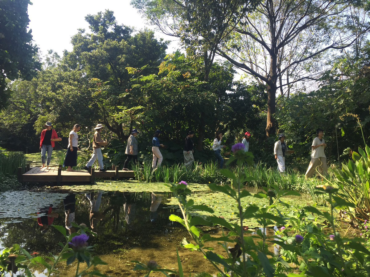 於新美館二樓獨特的天臺場域,連結肢體的內部及外在環境,建築體與自然、堅硬與柔軟、骨骼與肌肉⋯⋯透過步行與身體律動,拓展感知並以肢體自由自在地回應。